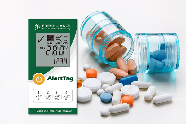 Der AlertTag T10 ist ein Einweg-Temperaturindikator mit einem LCD-Bildschirm, der zur Überwachung der temperaturempfindlichen Produkte während der Transportation, Lagerung und des Handels in Kühlkettebranchen verwendet wird. Es gibt bis zu 4 verschiedene Alarmgrenzwerte für die Temperatur zwischen -30°C und +70°C. Wenn die Umgebungstemperatur die voreingestellte Temperatur überschreitet, wird der entsprechende Alarmpunkt 1, 2, 3 oder 4 auf dem Bildschirm angezeigt, um zu alarmieren. Dieser AlertTag T10 Einweg-Temperaturindikator wurde hauptsächlich für die pharmazeutische Industrie entwickelt, z.B. für die Überwachung von Impfstoffen, Proteinen oder anderen temperaturempfindlichen Produkten. Aber er lässt sich auch für die Überwachung von Obst, Gemüse und Produktion verwenden.